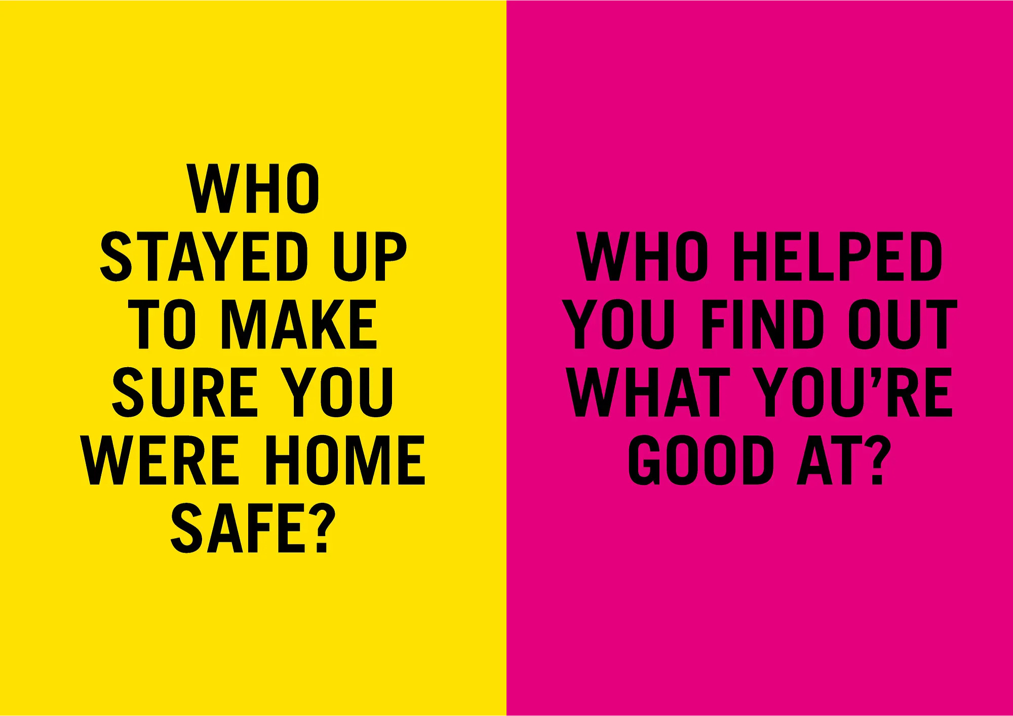 Three walk-in installations recreate familiar locations, enabling visitors to understand how real children and their families have been supported to break the destructive cycles. A mother’s voice emanates from a football floating above an astroturf pitch, recalling how her son’s determination, with help from his guide, has challenged every assumption that he would never get back to school. Provocations in the space ask us to consider our own upbringing and support systems: Who stayed up to make sure you were home safe? Who helped you to say sorry?