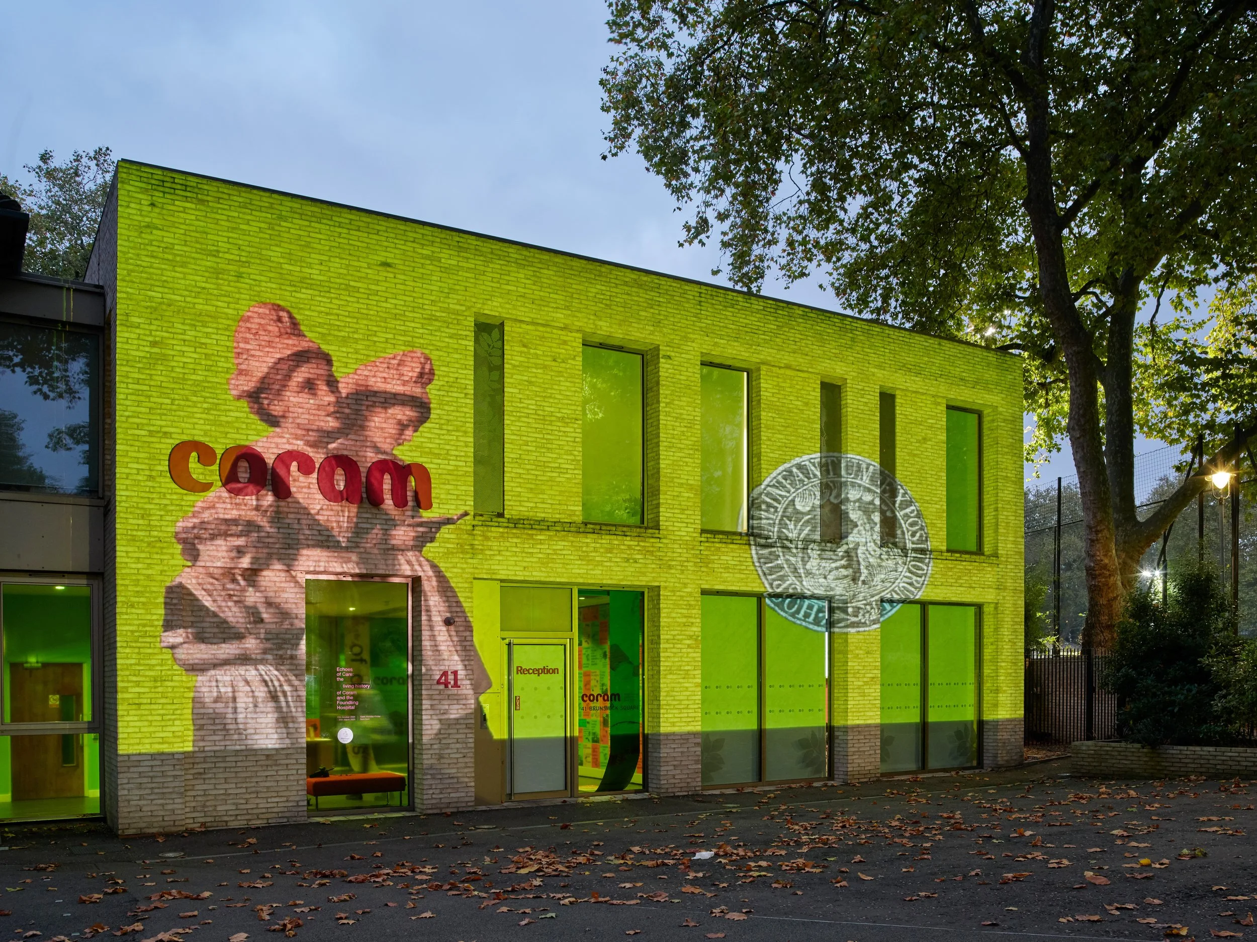 We also created an arresting, full-scale graphic projection for Coram to project onto the facade of their building. The projection established a tone for the installations displayed inside, introducing key themes such as the history, motivation and impact of Coram’s legacy.